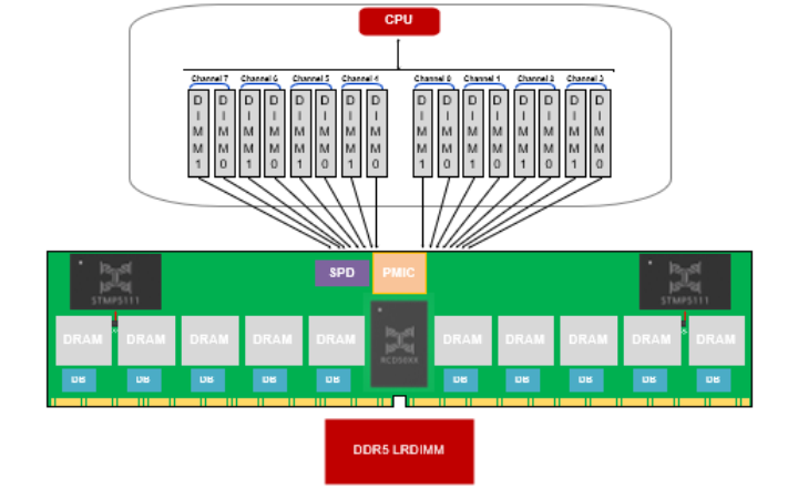 符合JEDEC标准的DDR5寄存缓冲器(RCD)芯片,最高支持5600MT/s速率。该芯片采用双通道内存架构,支持1.1V VDD电压。以提供更高容量、更低功耗的内存解决方案。